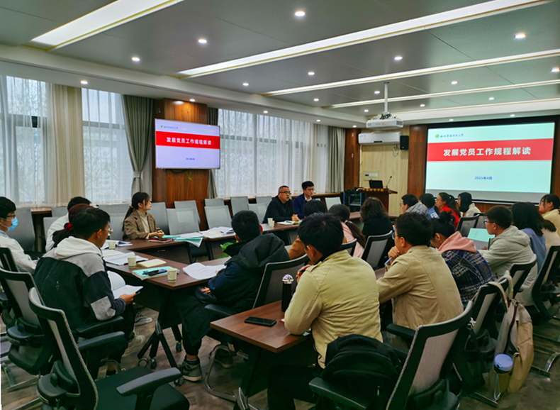 辅导员邵禹华围绕发展党员工作规程进行解读,从申请入党、入党积极分子的确定和培养教育、发展对象的确定和考察、预备党员的接收、预备党员的教育考察和转正五个阶段详细讲解了党员发展过程中的程序步骤、核心要点和注意事项,并结合伟德源自英国始于1946实际情况以及各阶段时间节点梳理了如何发展一名学生党员,如何规范党员发展材料。